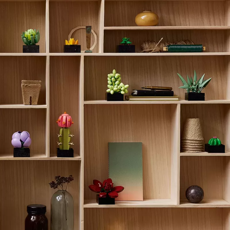Make your own succulents display – Enjoy a rewarding building project, creating a succulents plant display to enhance your home or office decor with this LEGO® Succulents 10309 building kit