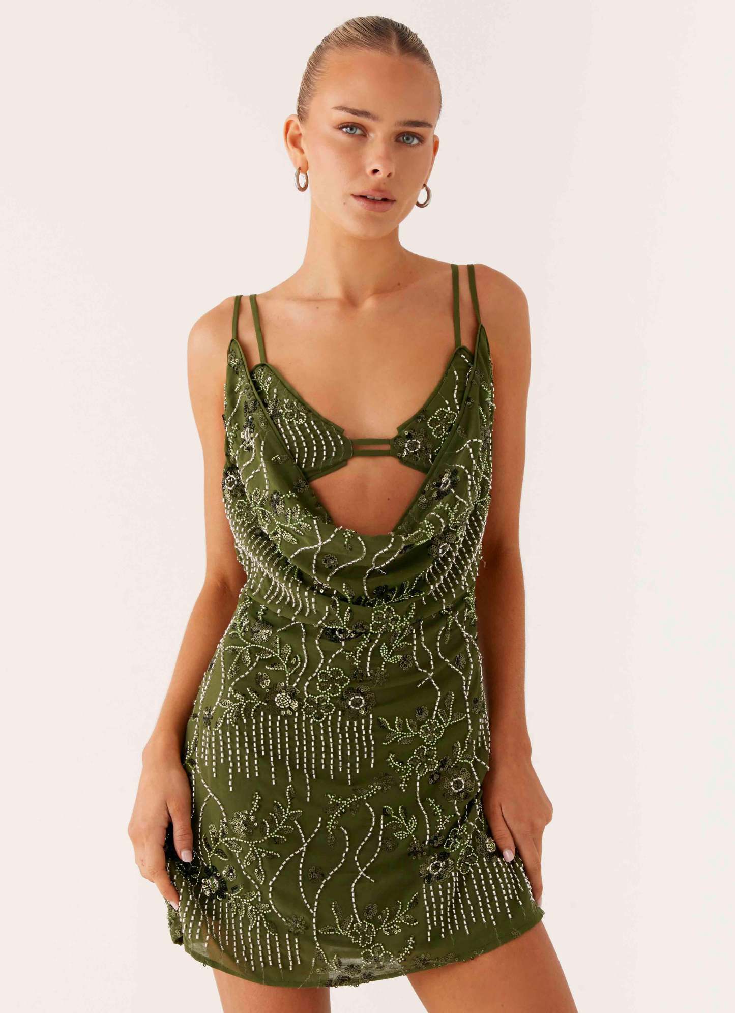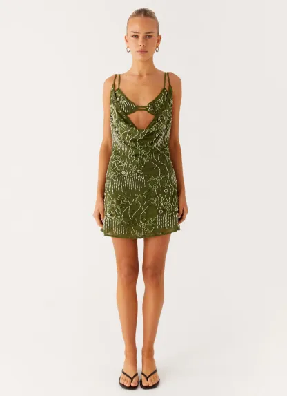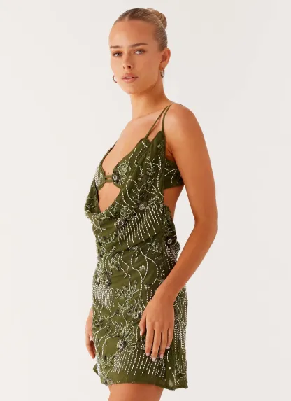 Olive Stardust Backless Mini Dress