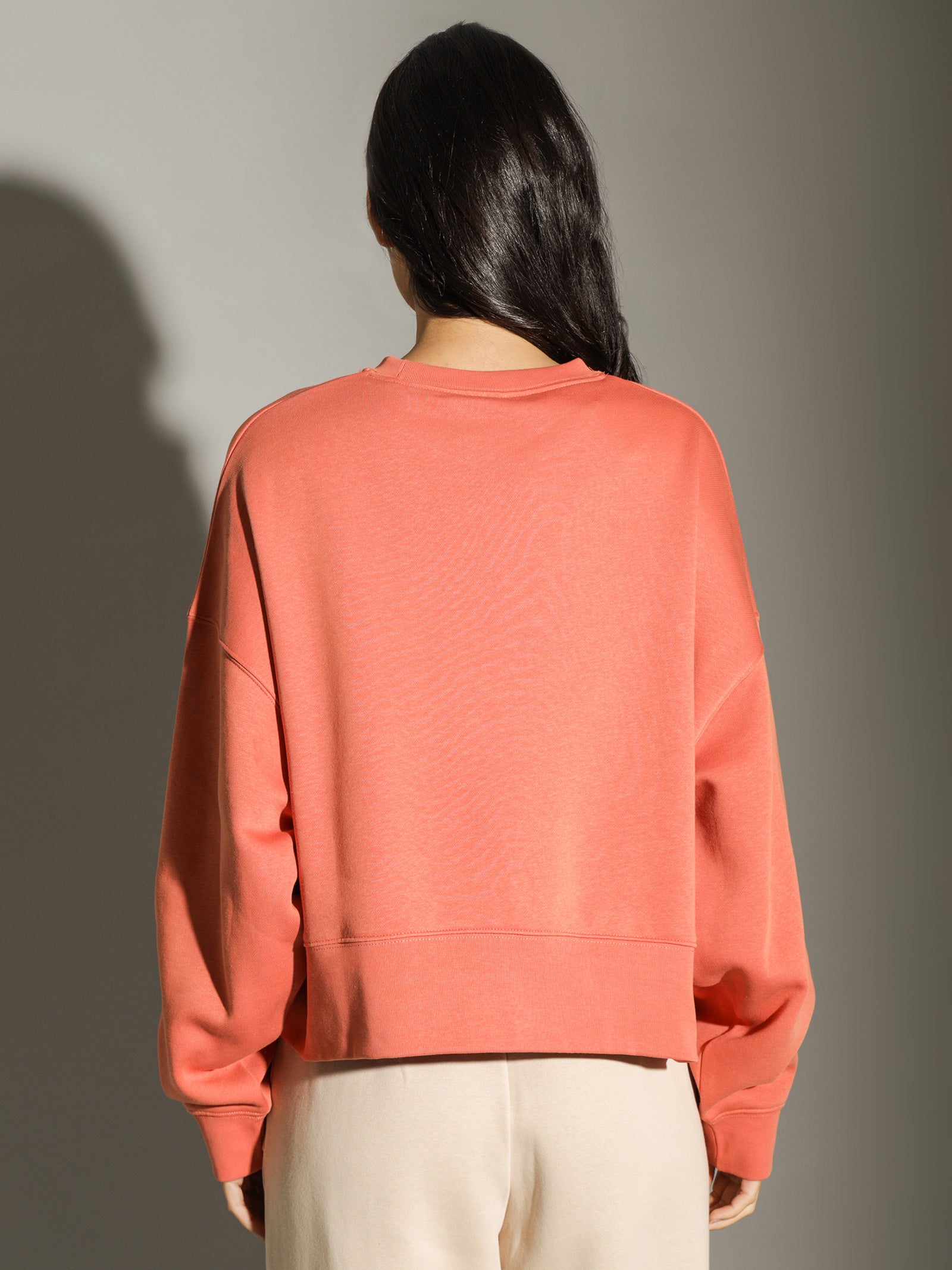 - Drop shoulder with relaxed long sleeves.